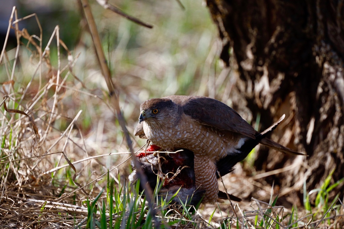 I watched this Coppers Hawk attack this young crow in my field ,I quick grabbed my camera and managed to get some great photos. It was not giving this kill up for anything.