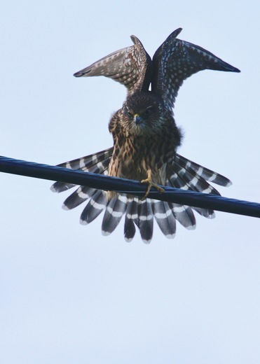I had seen this Merlin about four times but was unable to photograph it. Finally one evening I caught it perched just up the road from my house on the power line.