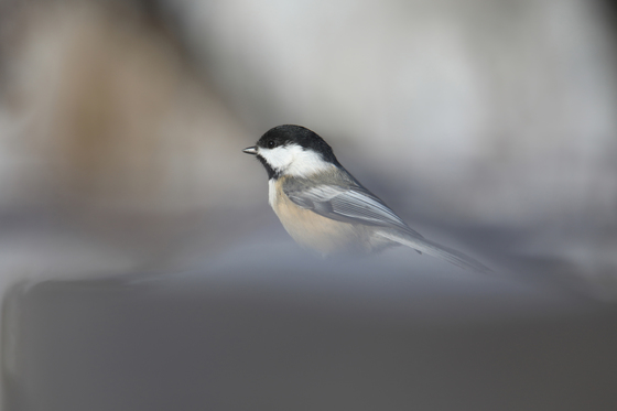 A Black-capped Ckickadee on snow.