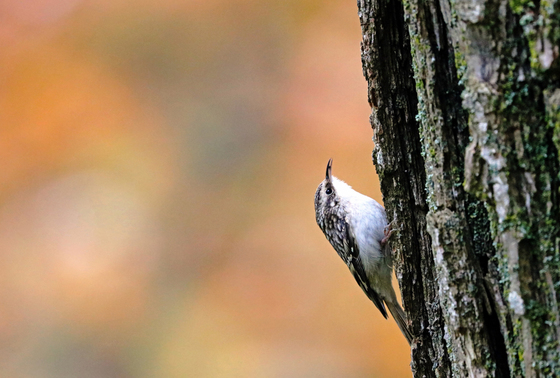 It took me forever to get a close up of this tiny Brown Creeper that probes into crevices and picks at the loose bark of trees for insects in the woods. The Creepers typically spiral upwards from the bottom of a tree trunk and then fly down to the bottom of another tree and spiral up again. This little Brown Creeper was moving steadily up the tree in the fall woods in Guelph Ontario Canada.