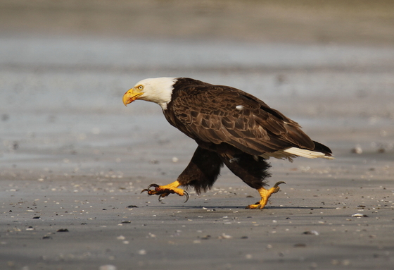 After feasting on a seal, this Bald Eagle ran off to some Important Eagle Business farther down the beach in Tofino.