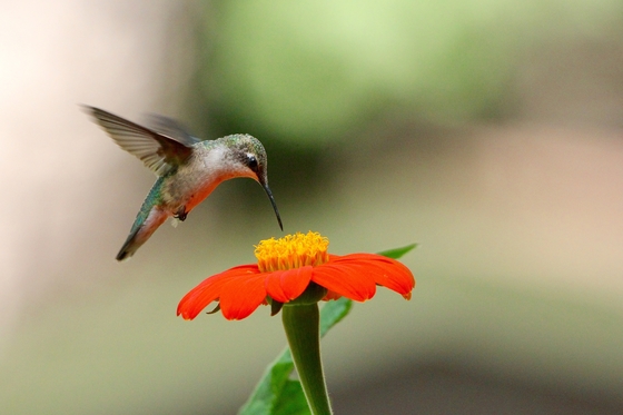 I took this photo of the Ruby- throated hummingbird in my flower garden.