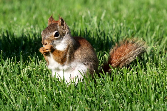 If you're familiar with little Red Squirrels you'll know how feisty they are. They never back down to anything regardless of the size of the bird or animal they're taking on.