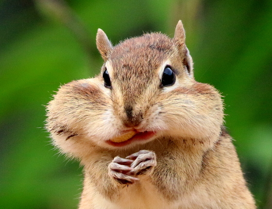 This female Chipmunk is busy stuffing her face with peanuts. I'm amazed at how many peanuts some Chipmunk's can store in their cheeks.