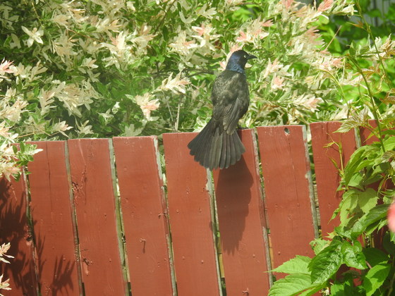I took this Common Grackle in my sisters backyard in Moncton NB. It is not too often that I have been able to get a picture with the tail fanned out.