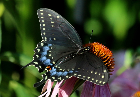 Visiting my yard this Black Swallow Butterfly was busy going from one flower to the next. I find them one of the more difficult butterflies to photograph as usually they continue moving their wings while they sit on a flower.