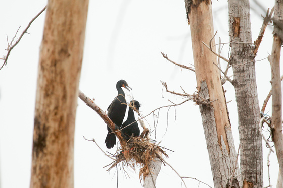 A pair of Double-crested Cormorants assemble their nest in preparation for the upcoming breeding season. Taken at Tommy Thompson Park in Toronto, ON
