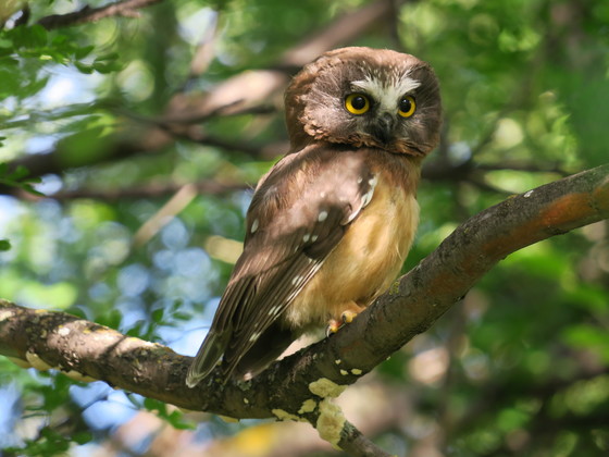 This summer I was lucky to see this stunning northern saw-whet owl in a park in Calgary.