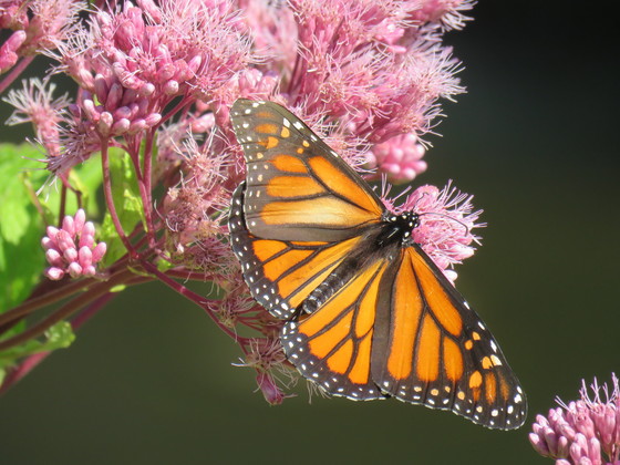 Monarch on wild Joe Pye Weed. Great to capture the butterfly with its wings open!