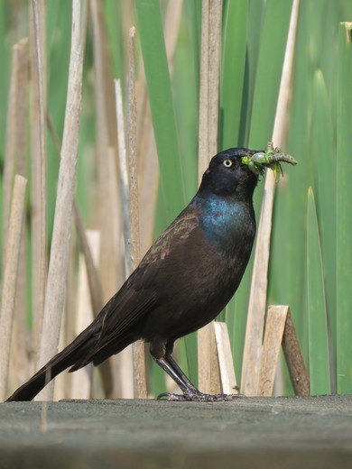 Dragonflies hatch in the swamp at the same time that Common Grackles are looking for insects to feed to their young.
