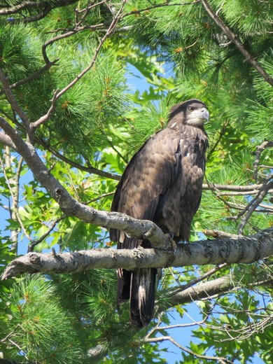 This is the first year I have ever spotted a young bald eaglet on our lake. Photo taken from a kayak. It is difficult to think of such a large bird as being a tiny baby needing to be fed.