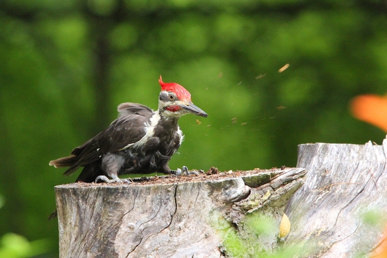 I was thrilled to be able to get this shot of the Pileated Woodpecker at the stump in my backyard.