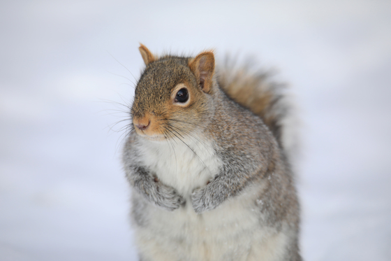 A portrait of a squirrel in winter...for a few seconds, he has stopped for me.