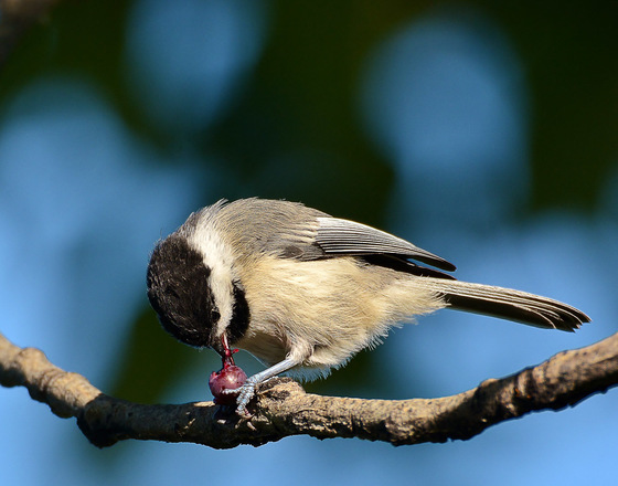 We all know how fast Chickadees are....I was happy to catch this one pulling the seed from a Saskatoon berry with the utmost precision.