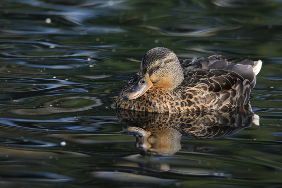 A female Mallard looking zen in the pond.