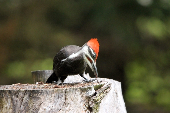 This Pileated Woodpecker was pecking at a stump in our back yard. I managed to take several pictures as he didnt seem to mind my presence.