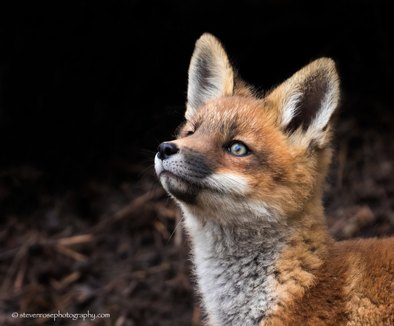 A fox kit exploring its surroundings