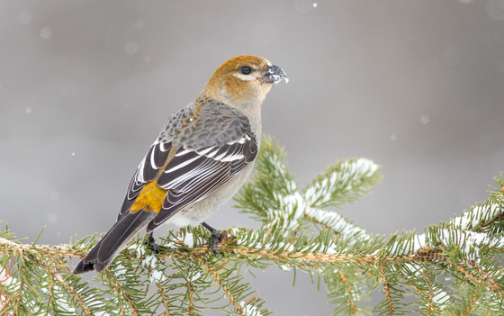 During the winter of 2018-2019 pine grosbeaks moved well south out of their normal range. There were many great opportunities to photograph them such as this female on a spruce.