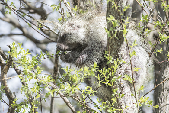 Porcupine. Enjoying leaves in the spring.