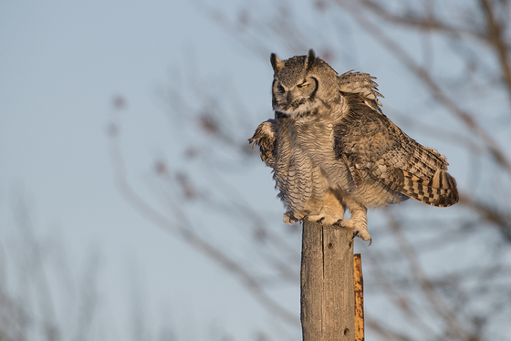 Great horned owl. That’s better all fluffed up and shaken out ready to snooze.