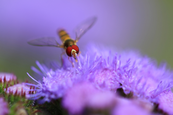 Macrophotography of a Syrphid on a flower
