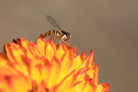 Macrophotography of a Syrphid fly on a flower.