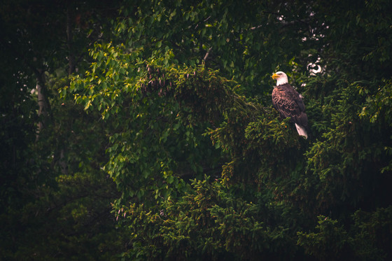 A bald eagle scans the water for its prey. This image was captured along the shores of Arrow Lake, in Northwestern Ontario.