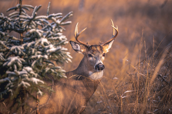 A young buck travels through the snowy brush of Mission Island Marsh in Thunder Bay, Ontario.