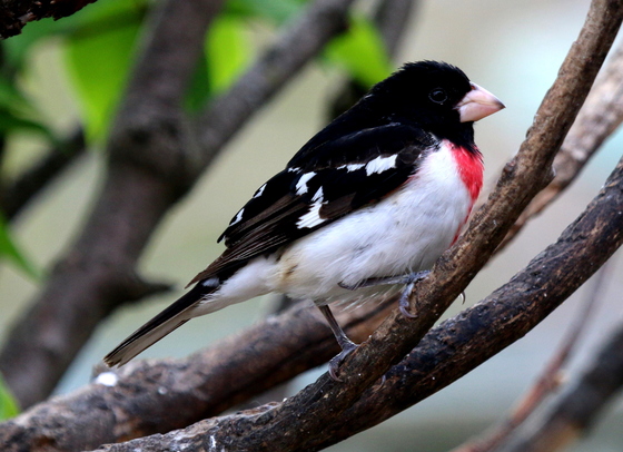 A Rose-breasted Grosbeak is one of my favourite birds because of its colouring and thick bill. They visit my yard for a few days when they migrate north in the spring, to eat my sunflower seeds.