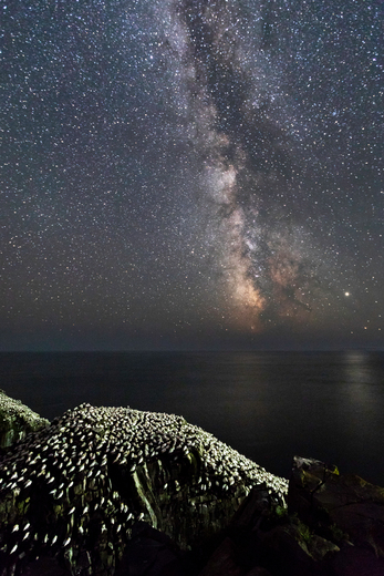 The Northern Gannet colony sleeps under the milky way at Cape St Mary's Ecological Reserve.