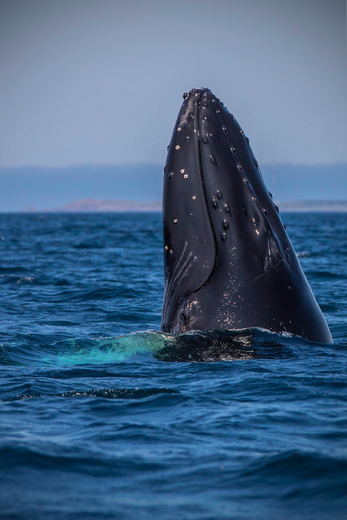 A curious humpback whale spy hopping and checking us out in a zodiac.