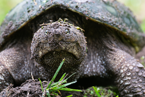 A rainy day in Pele Point had this large Snapping Turtle laying her clutch of eggs in a freshly dug hole before heading back to the water.