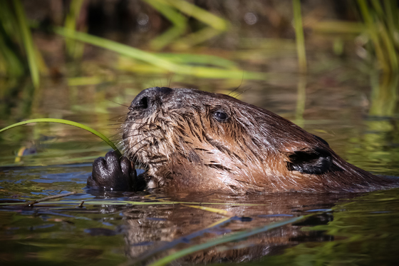 This little Beaver glares at me as if to say "Do you Mind" as he partakes in a little snack.