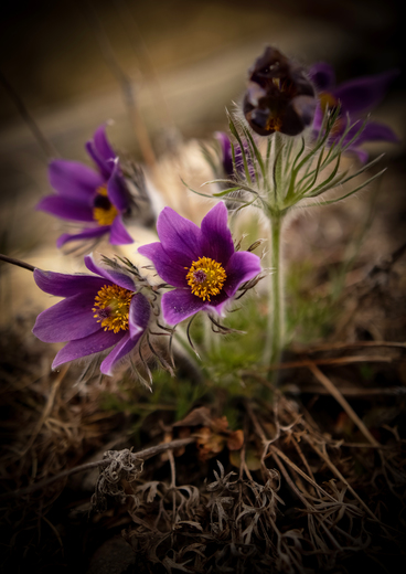 Life emerging from the dead ground cover as a spring crocus pops out of the ground