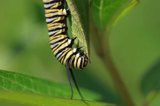 Macrophotography of a worm at one step of becomming a Monark butterfly.