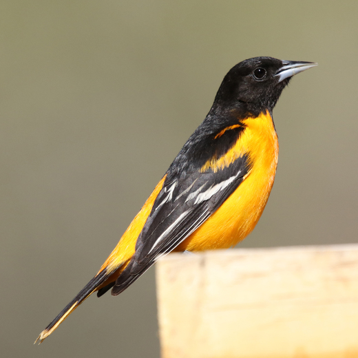 My first encounter with a Baltimore Oriole as he visits the bird feeder