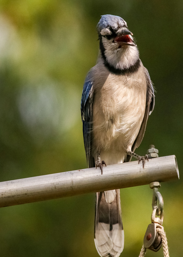 This Blue Jay appears to be giving a lecture from his perch on the feeder