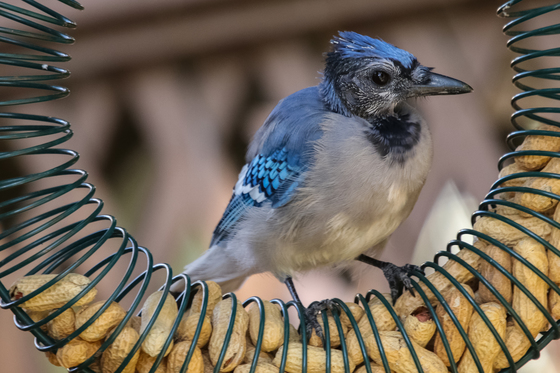 This fledgling Blue Jay looks a little gangly without his adult feathers having forned yet