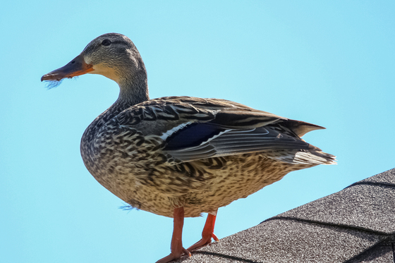 This female Mallard duck takes a break from the nest while still keeping vigil