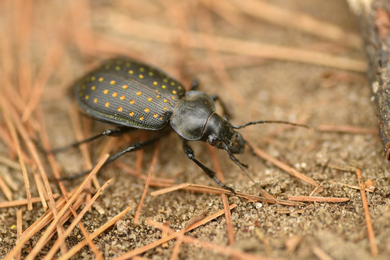 Although a lot of ground beetles a typically monotone, this particular beetle caught my eye with the iridescent spots on its back which changed colour, from yellow to green to red, depending on the direction of the light.