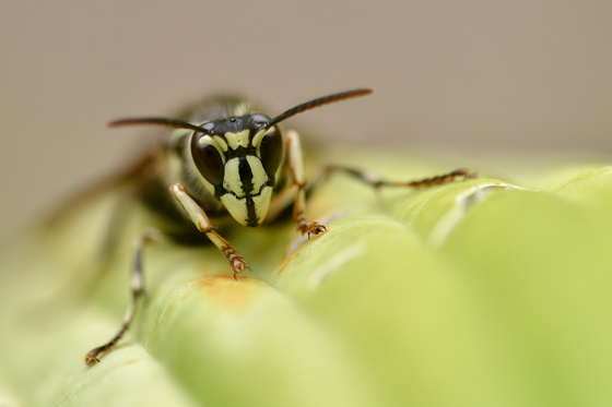 I captured this shot of a Bald-Faced Hornet on a relatively cool day as it was trying to warm itself on the leaf of a Hosta.