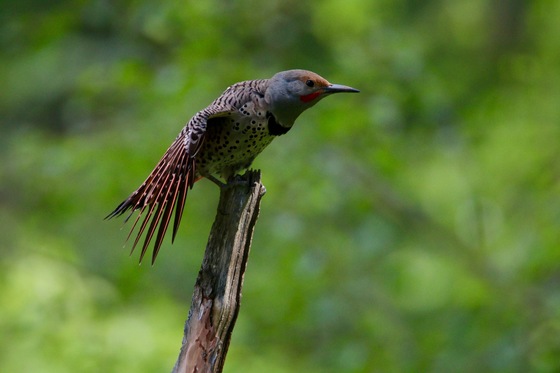 A morning stretch before flying off in search of food for its two chicks near by.