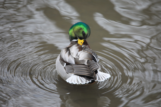 A male Mallard in a little river in winter.