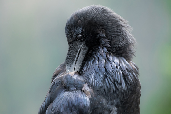 Common Raven preening feathers
