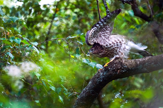 Young cooper's hawk with unfamiliar flying skills