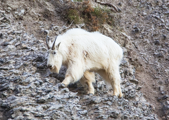 Mountain Goat traversing a cliff for salt