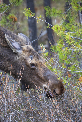 A young bull moose enjoying the new shoots