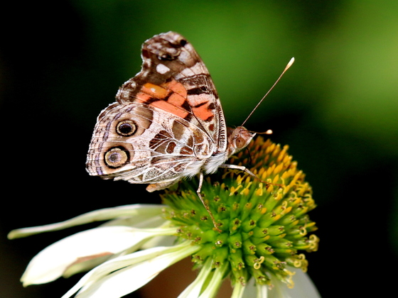 An American Lady Butterfly on a Coneflower. Coneflowers attract many butterflies to my garden.