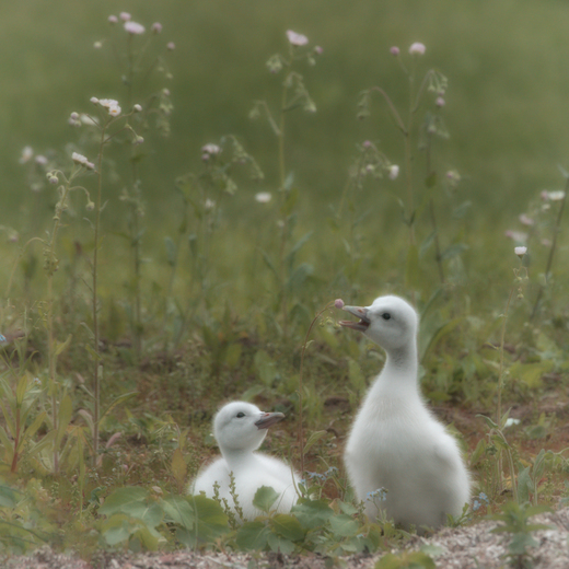 Week old trumpeter swan cygnets on their first land adventure, so much to explore.