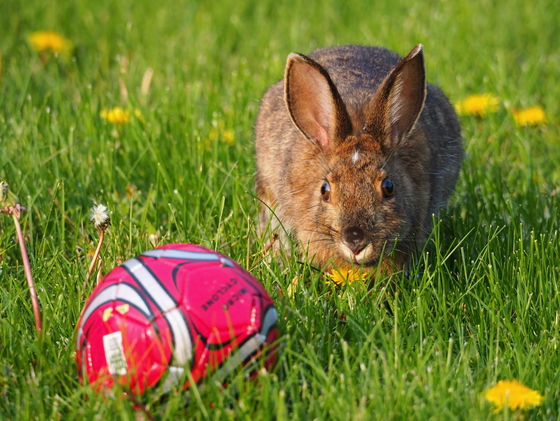 This Snowshoe Hare is pretty much a permanent fixture on our lawn. She finds herself in the middle of many of the kids' games.